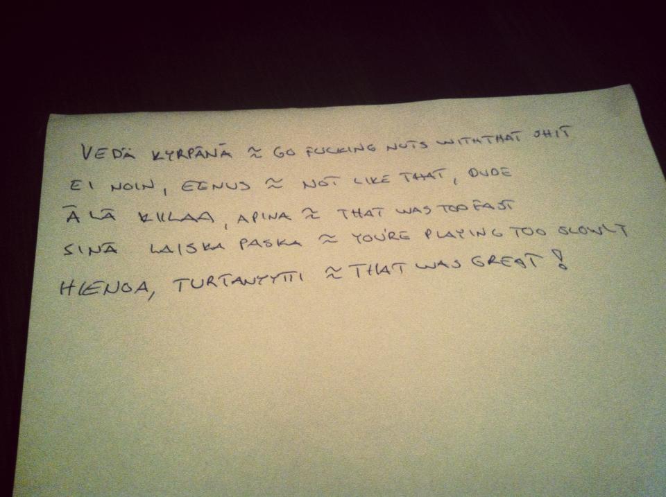 After we had a delicious dinner provided by the masterchef Usva, Tiera was feeling much better, and he pounded away another track, which goes by the work name “Kuolemanlaakso”.